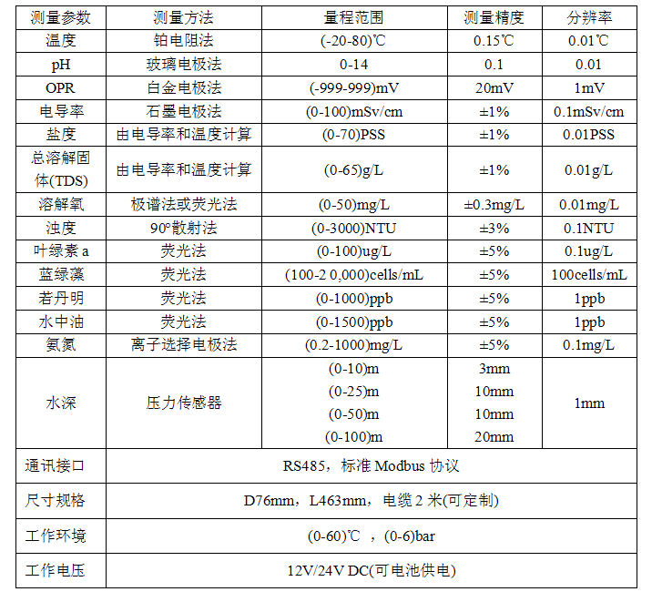 點創DCT-MWQ-5100/5101電極式多參數水質監測儀,可自由組合安裝2-12個水質傳感器,監測因子包括:溫度、pH、ORP、電導率、鹽度、總溶解固體、溶解氧、濁度、葉綠素a、藍綠藻、若丹明、水中油、氨氮、深度等。采用RS485接口和標準Modbus協議,功耗低,可內置電池,支持太陽能供電。DCT-MWQ-5101較5100使用更優性能電極,壽命更長,可工作在多種惡劣環境下。
